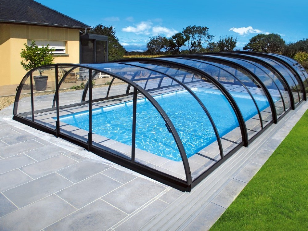 Tack vare vårt unika skensystem kan du enkelt öppna och stänga pooltaket när du vill.