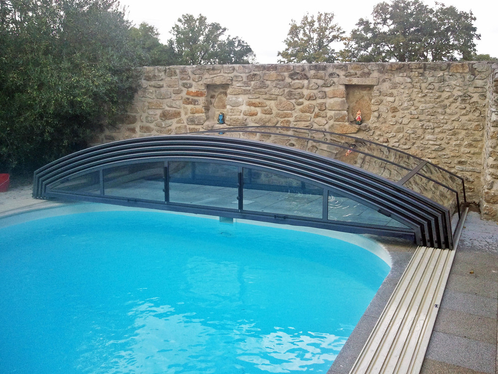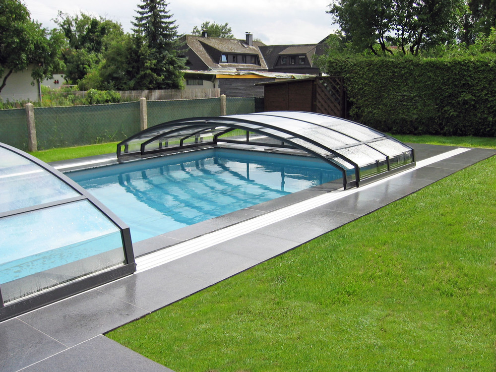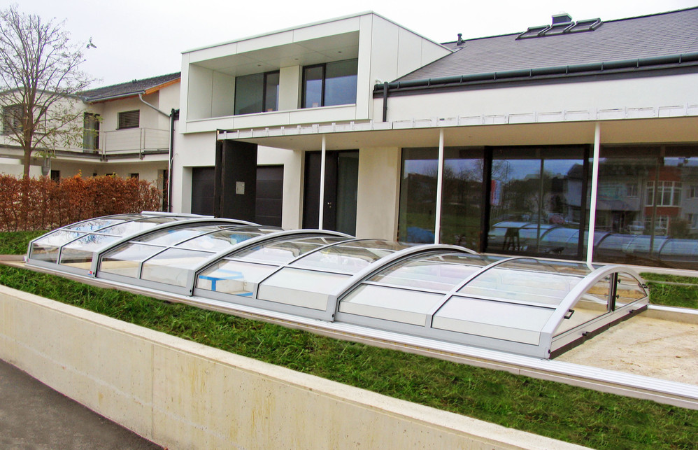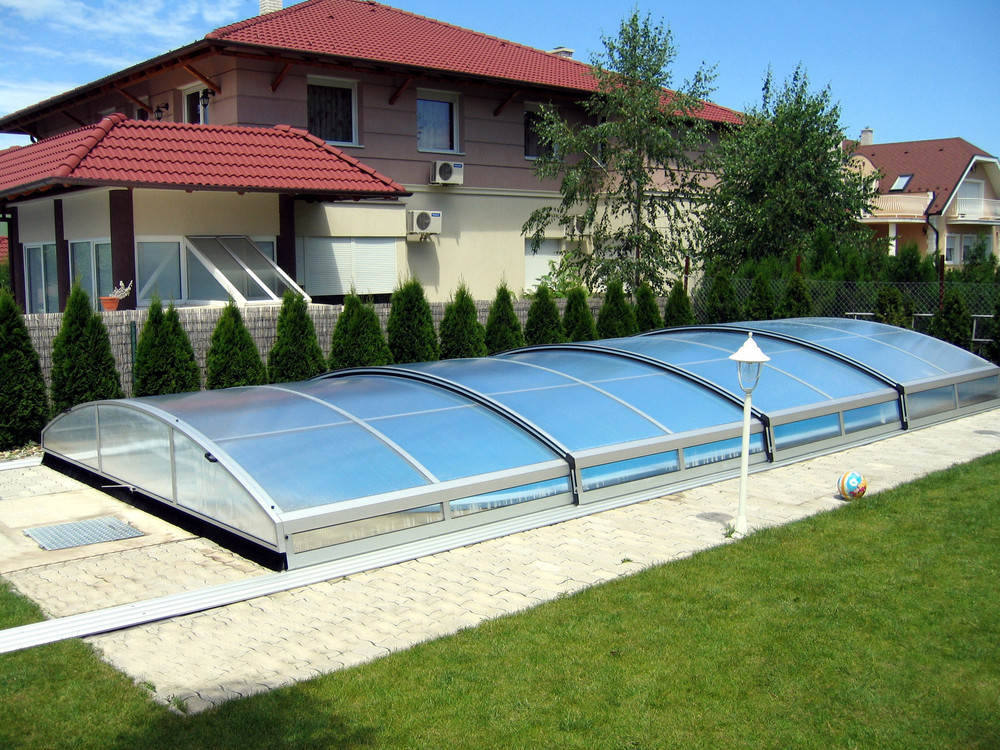 Lågt skjutbart pooltak - IMPERIA NEO - delvis öppet